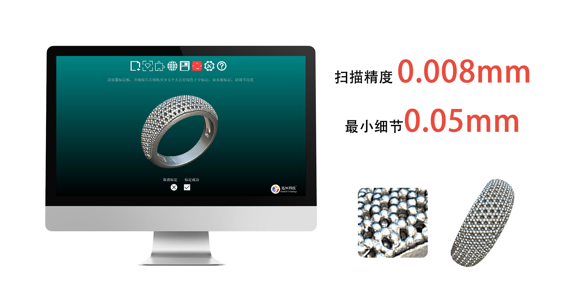 掃描精度:0.008mm、掃描范圍:80mm、掃描速度:0.3S 通迅接口:USB 2.0