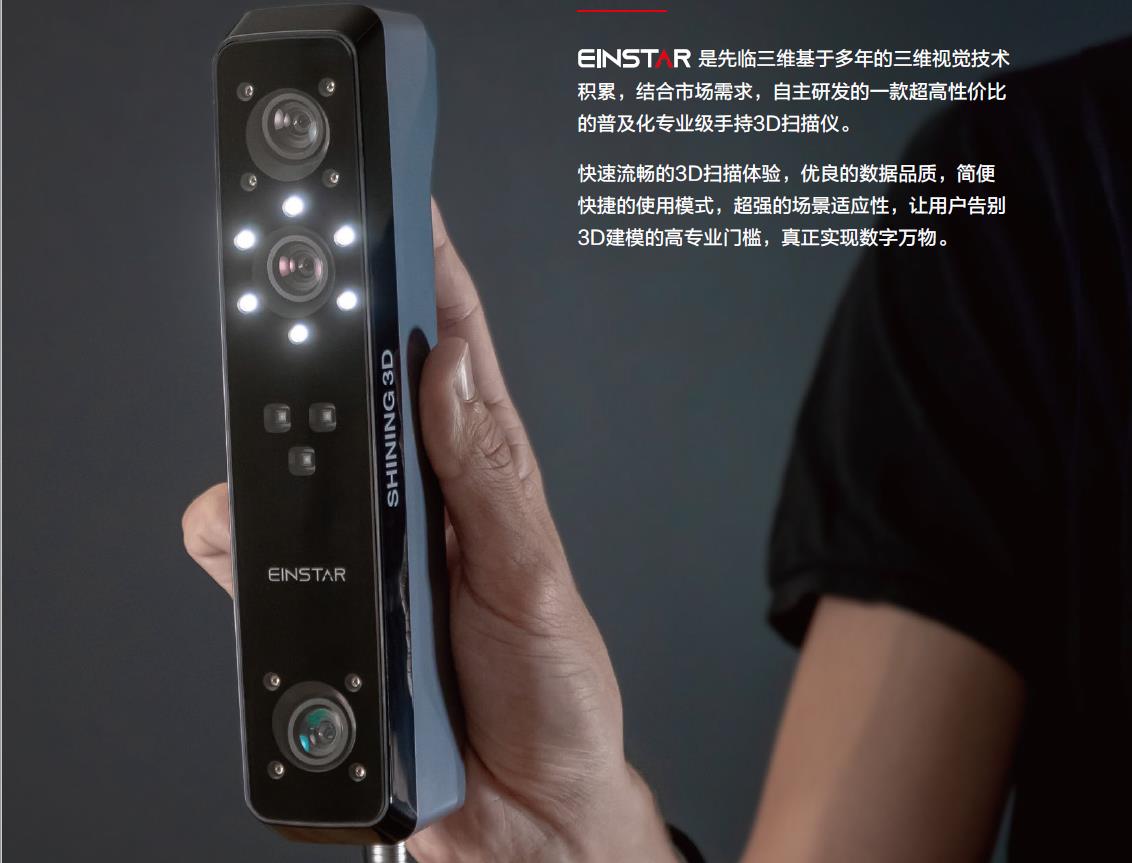 Einstar基于多年的三維視覺(jué)技術(shù)積累,結(jié)合市場(chǎng)需求,自主研發(fā)的一款超高性價(jià)比的普及化專業(yè)級(jí)手持3D掃描儀。 快速流暢的3D掃描體驗(yàn),優(yōu)良的數(shù)據(jù)品質(zhì),簡(jiǎn)便快捷的使用模式,超強(qiáng)的場(chǎng)景適應(yīng)性,讓用戶告別